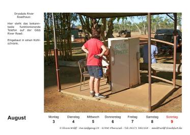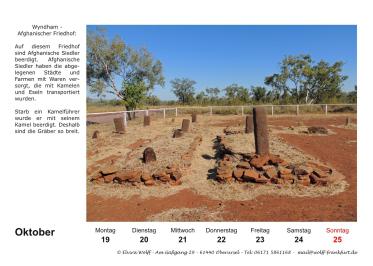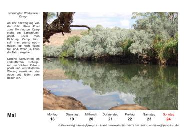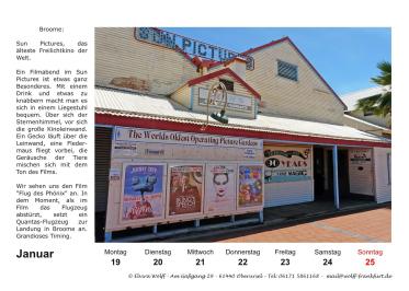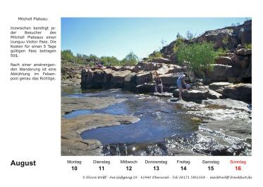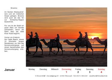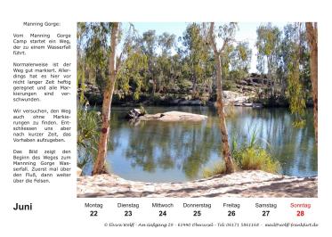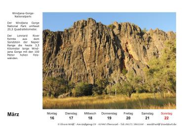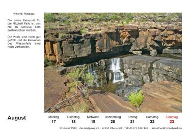 In diesem Jahr wird der Australien-Stammtisch Frankfurt a.M. 25 Jahre alt. Am 5. Juli 2025 findet der 300. Stammtisch statt. Aus diesem Grund habe ich mich entschlossen eine Sonderausgabe Kalender 2026 herauszubringen. Das besondere an diesem Kalender, er ist ein Wochenkalender mit 28 Kalenderblättern mit dem Thema The Kimberleys.
