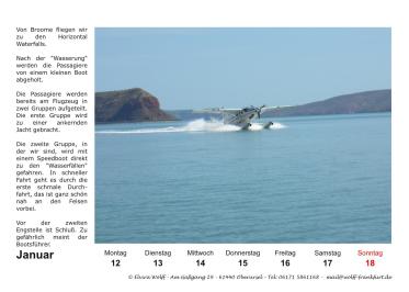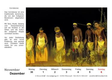 Zum ersten mal ist der Kalender mit zusätzlichen Informationen gespickt, meistens mit Texten aus unseren Reiseberichten.